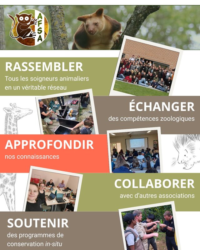 L'Association Francophone des Soigneurs-Animaliers a été créée dans le but de faire évoluer les méthodes de soins et de manipulations des animaux sauvages en captivité.