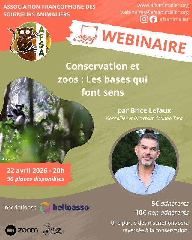 Le prochain webinaire, qui se tiendra le 22 avril, sera animé par Brice Lefaux et s’intitulera : « Conservation et zoos : les bases qui font sens ».